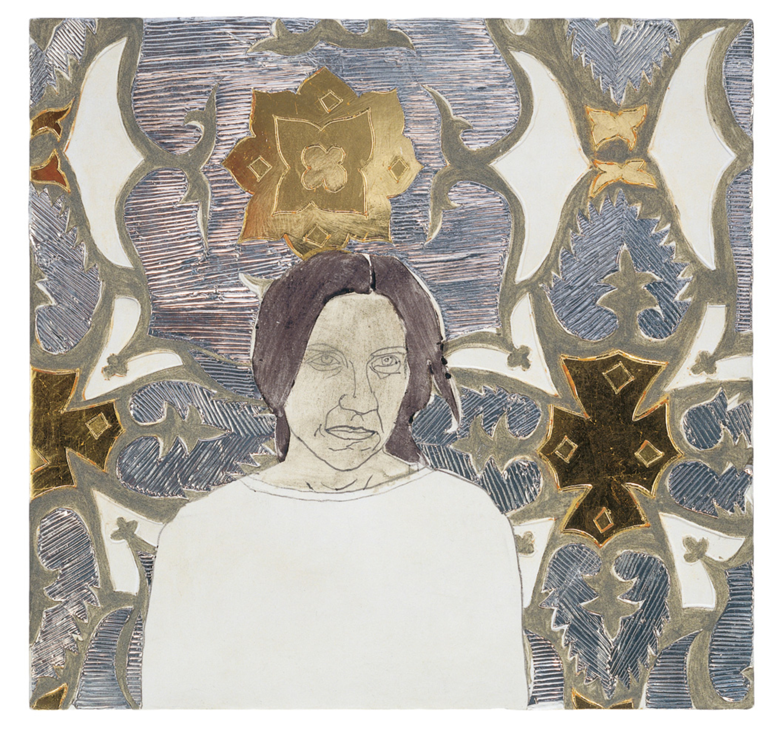 Tusche, Polimentvergoldung, Tempera, Zinnfolie auf Kreidegrund auf Holz