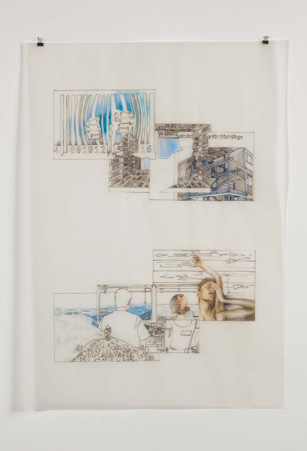 Tusche, Farbstift auf Transparentpapier