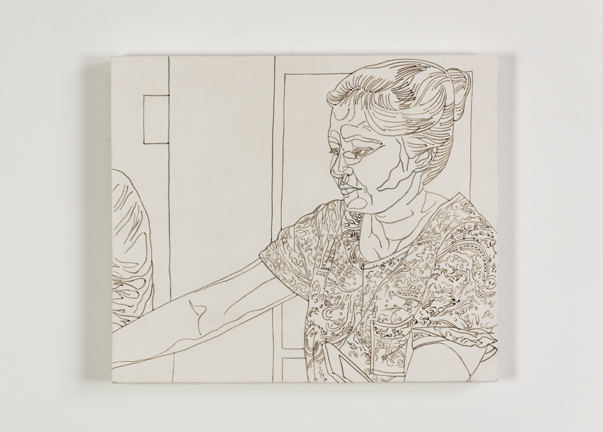 untitled , 2018 , ink on gesso on wooden panel , 15,3 x 18,10 inches