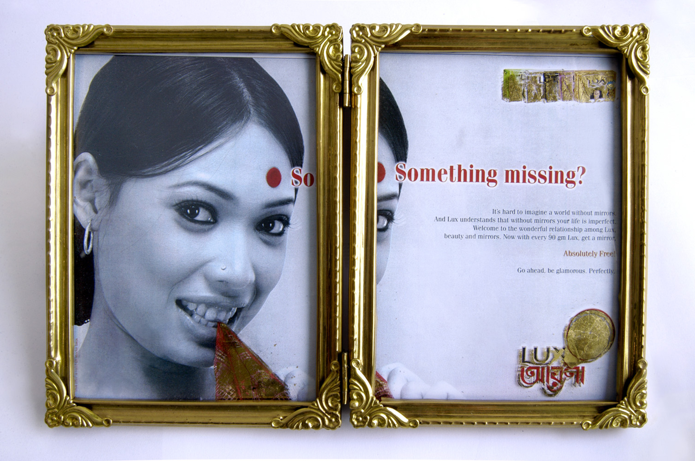 Vergoldung auf Glas, radiert, Zeitung, Fotorahmen