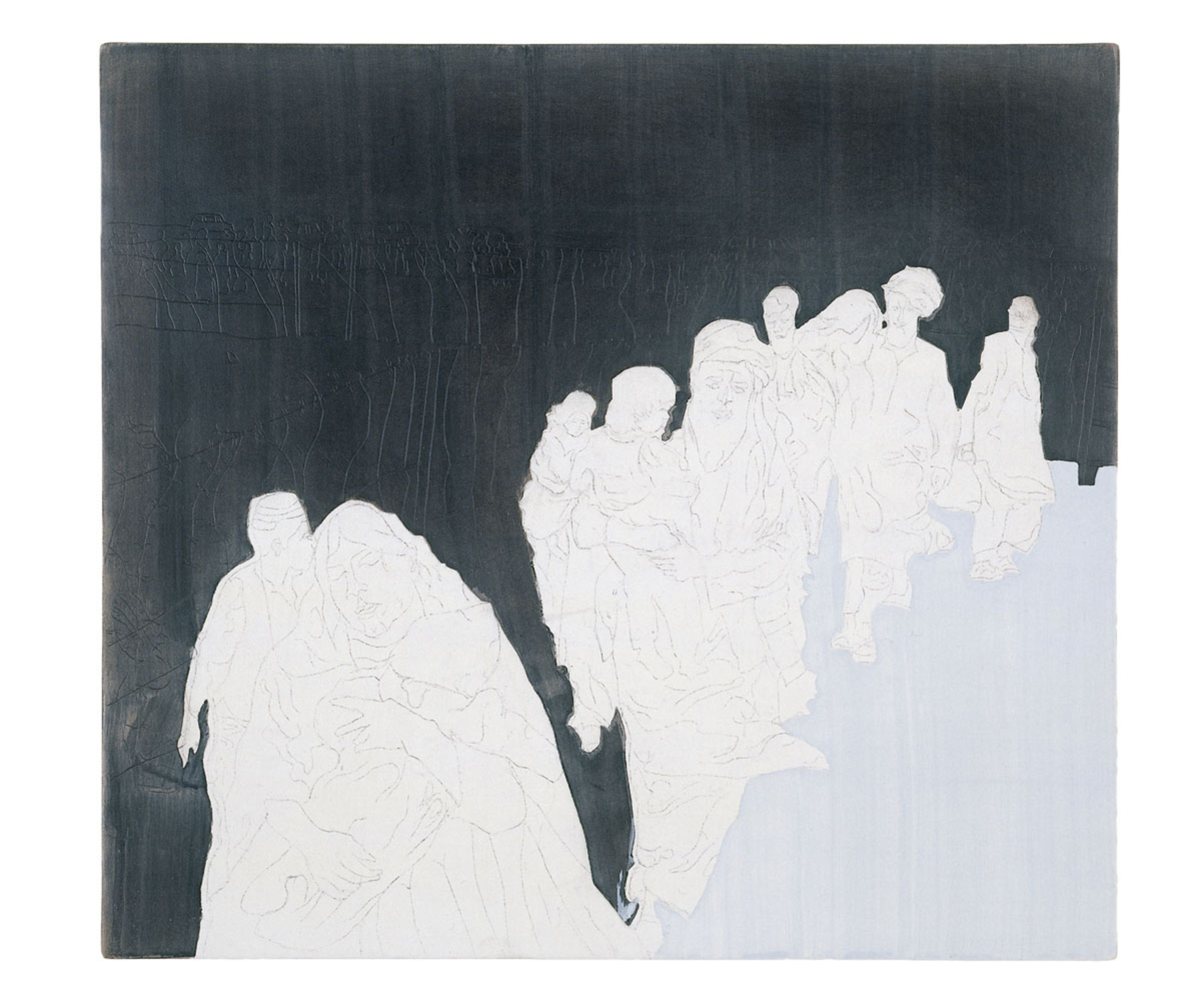 Tusche, Gravur, Tempera auf Kreidegrund auf Holz