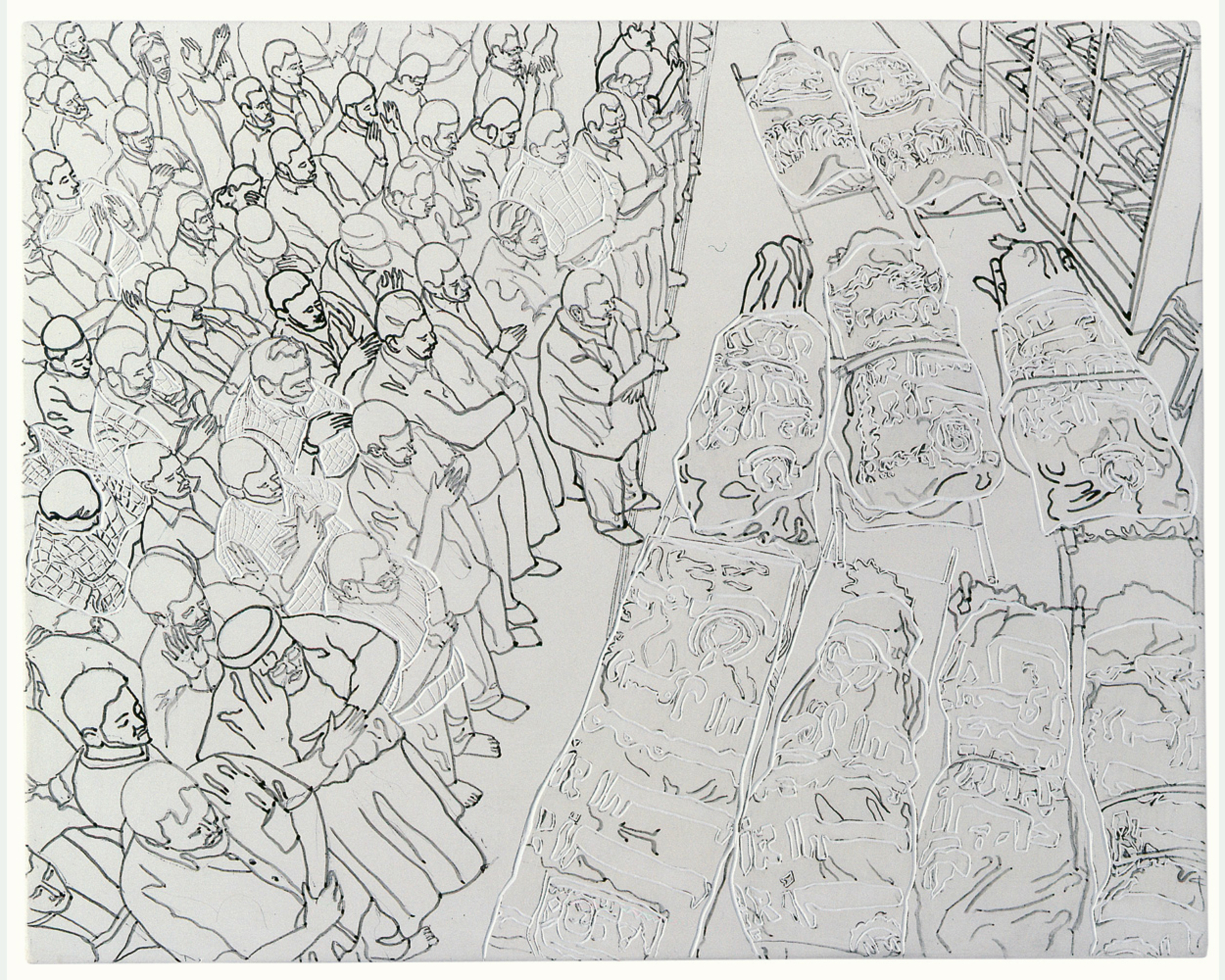 Nahostkonflikt , 2003 , Tusche und Gravur auf Kreidegrund auf Holz , 29,8 cm x 23,4 cm