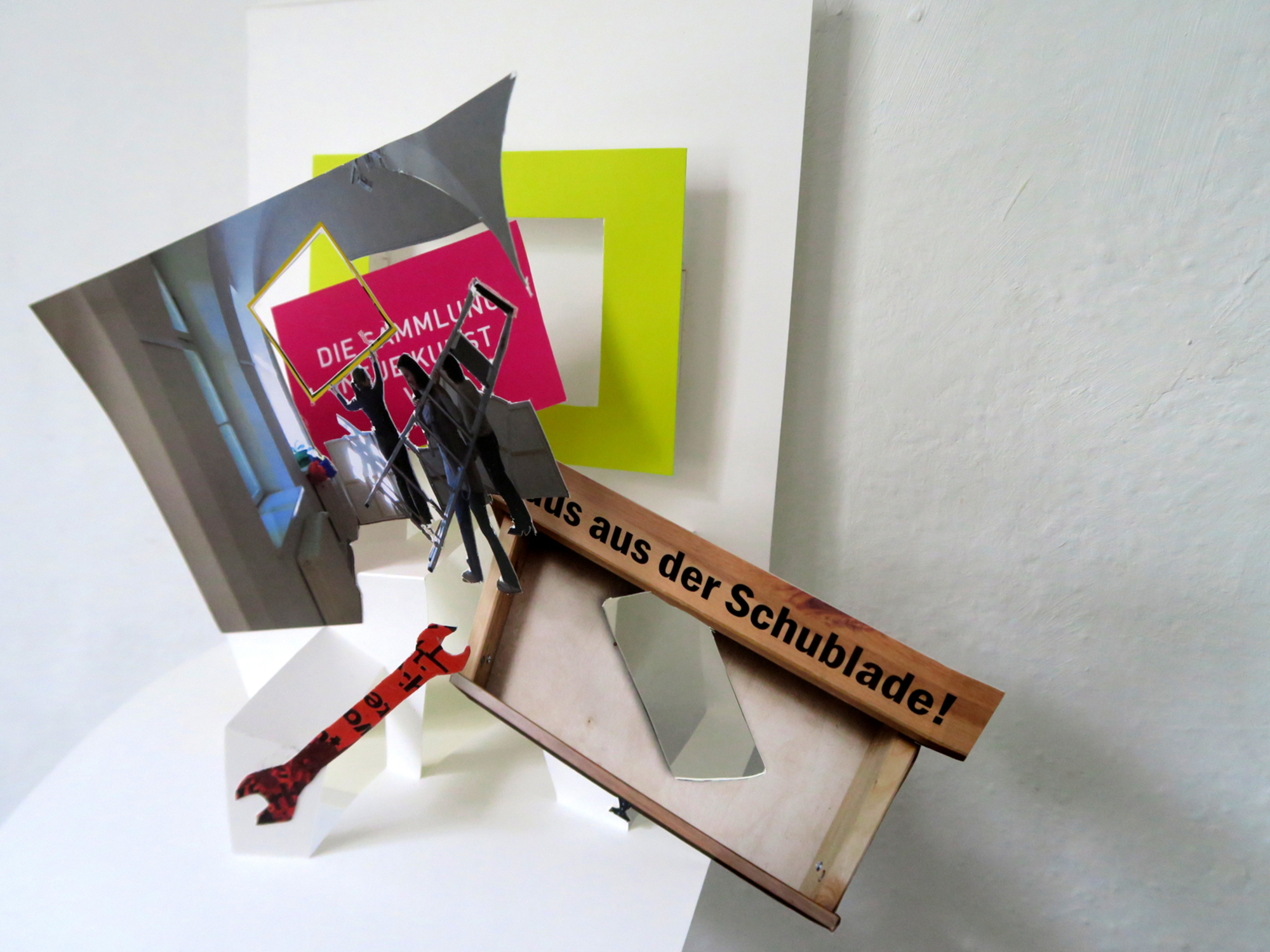 "Get closer- Ausstellung aus dem lockdown" , 2021 , Pop-up Technik aus Einladungskarten , ca 28 x 25 cm