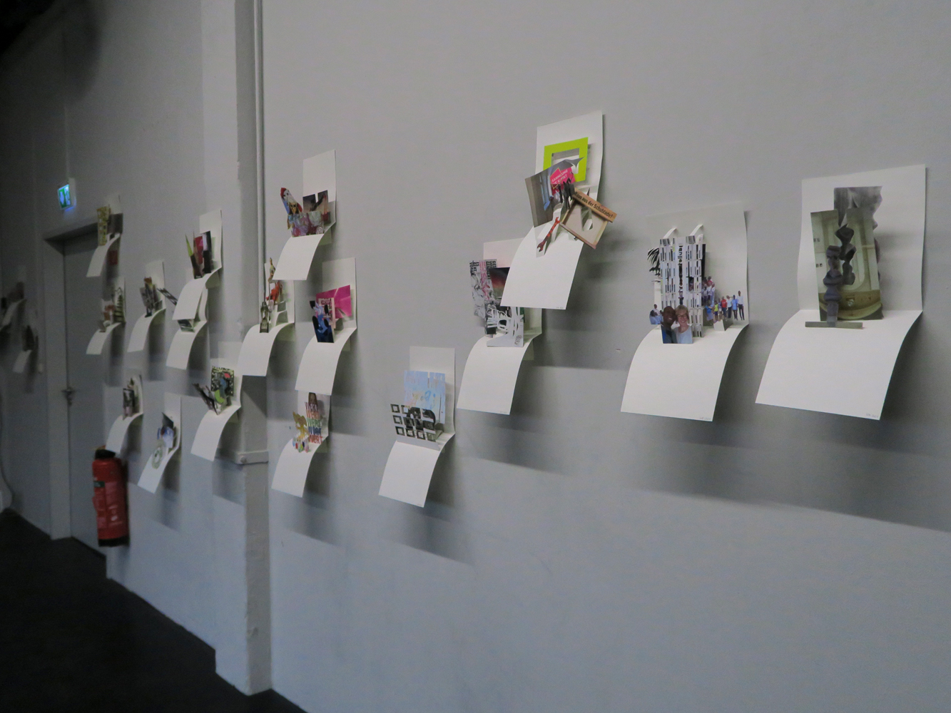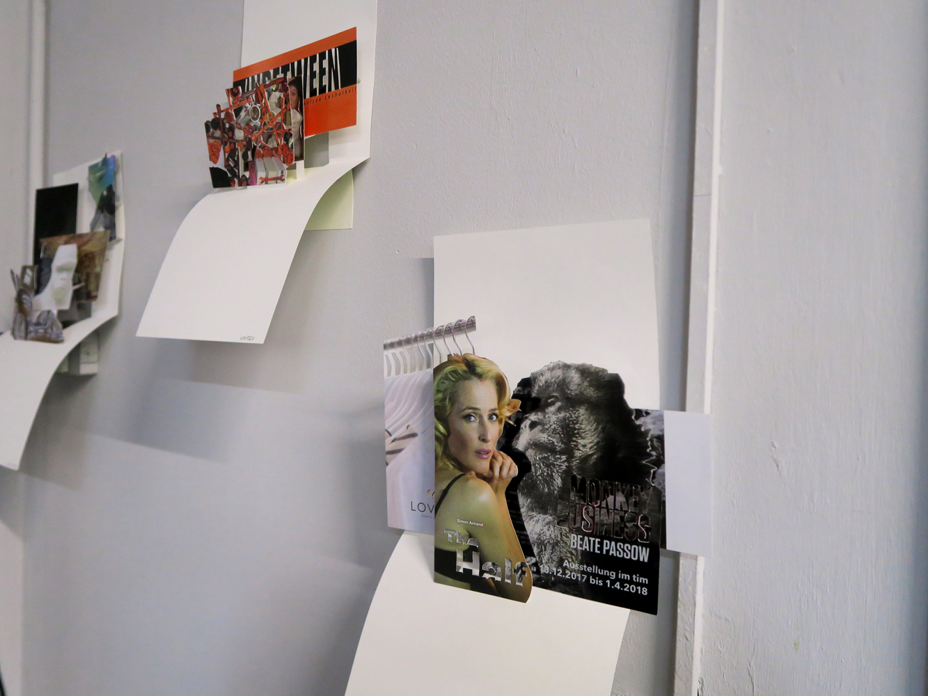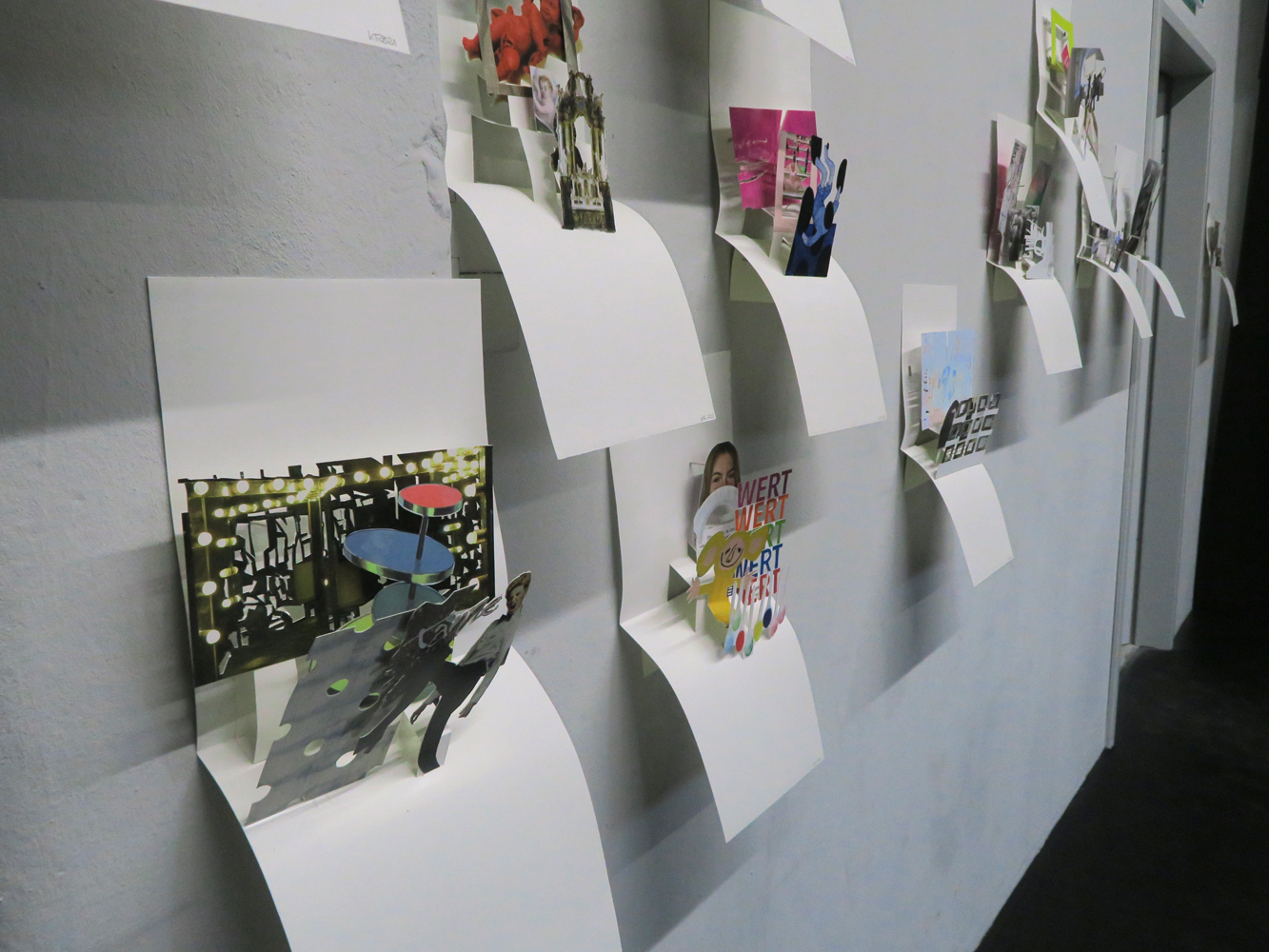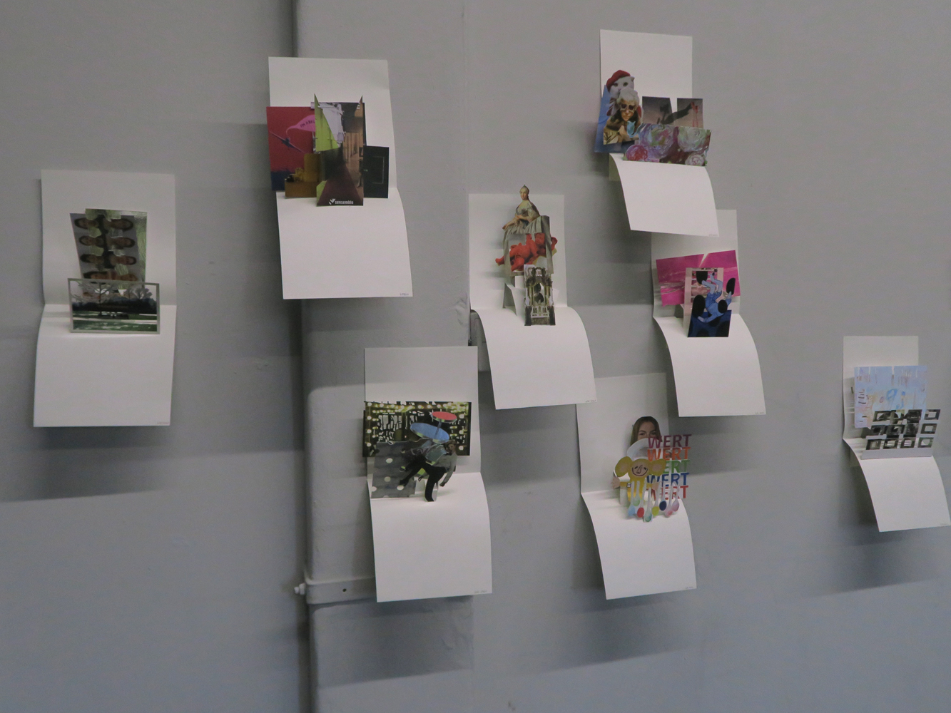 I used the invitation cards of artist- friends and galleries out of my collection since about 2005 to make pop- up cards about one artist friend together with 2 or three more cards. My intention was creating a small stage and telling a funny story changing the image of the card somehow into something else.