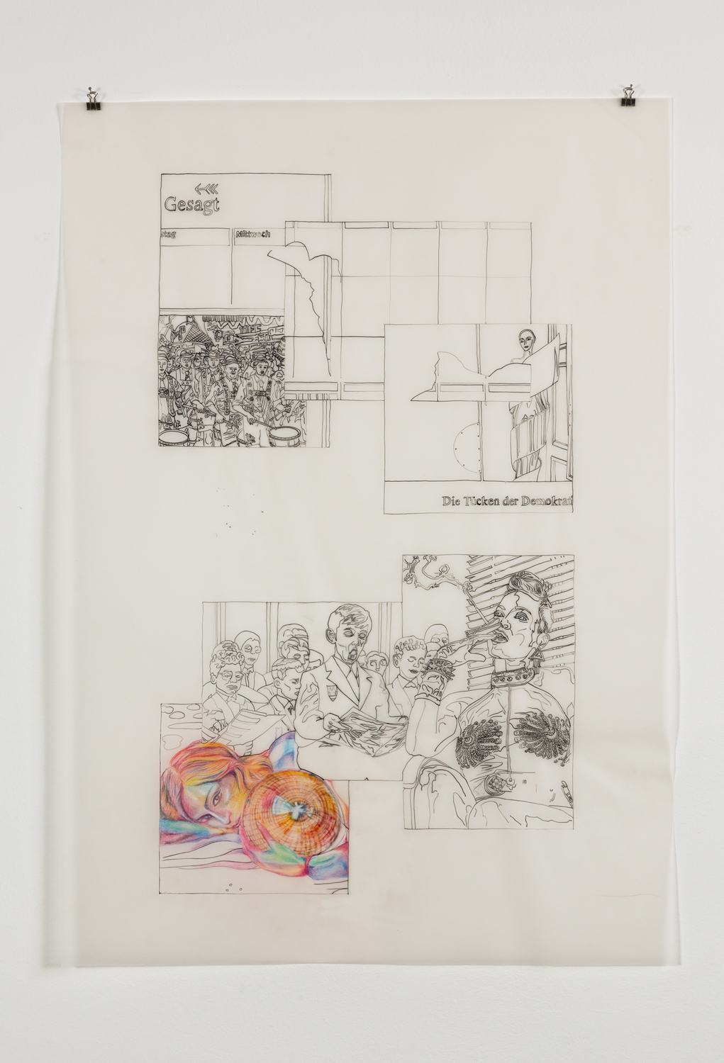 untitled (Madonna) , 2018 , ink and colorpencil on tracing paper , 34,6 x 24,4 inch