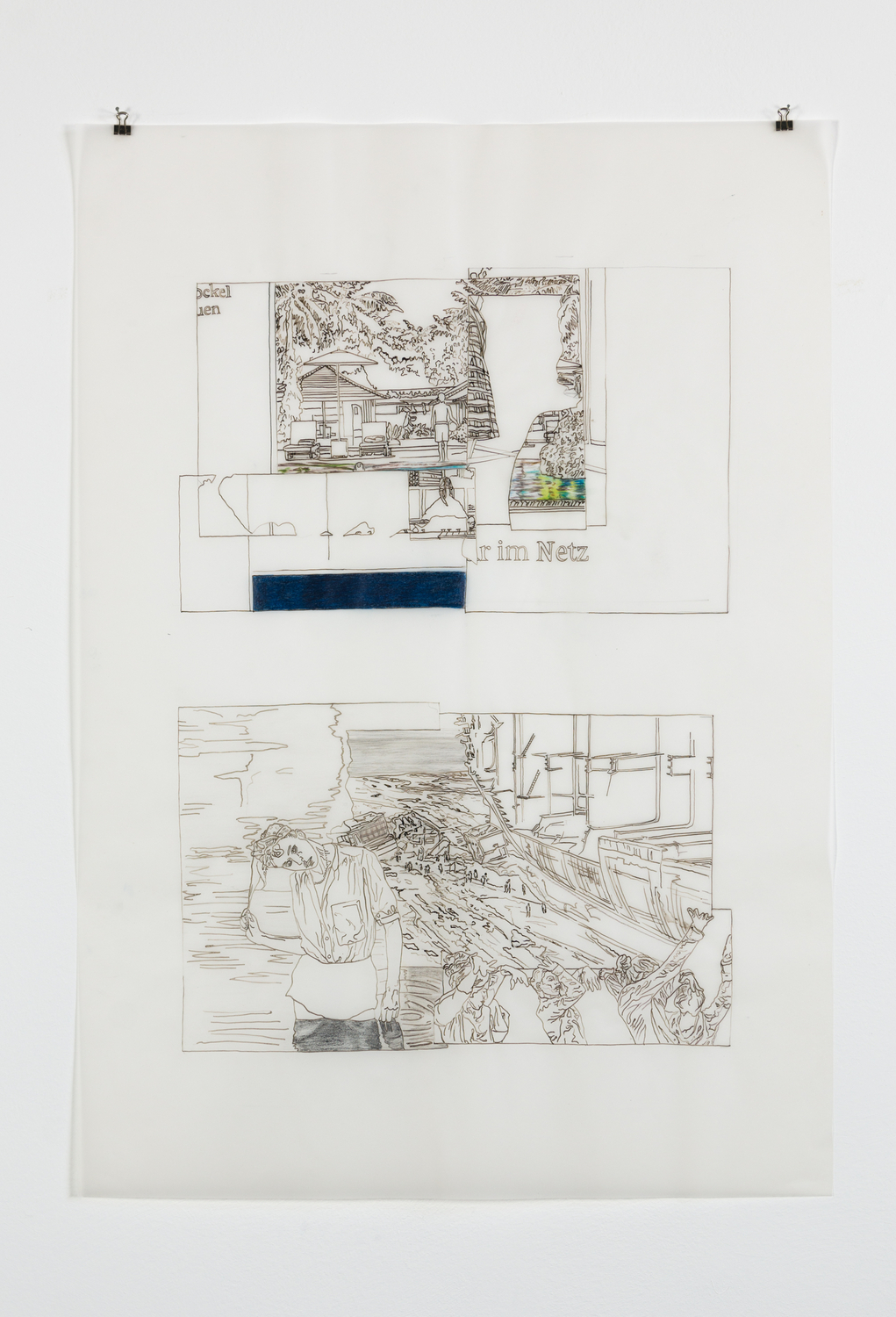 untitled ( Chittagong shipwrecking) , 2018 , ink and colorpencil on tracing paper , 34,6 x 24,4 inch