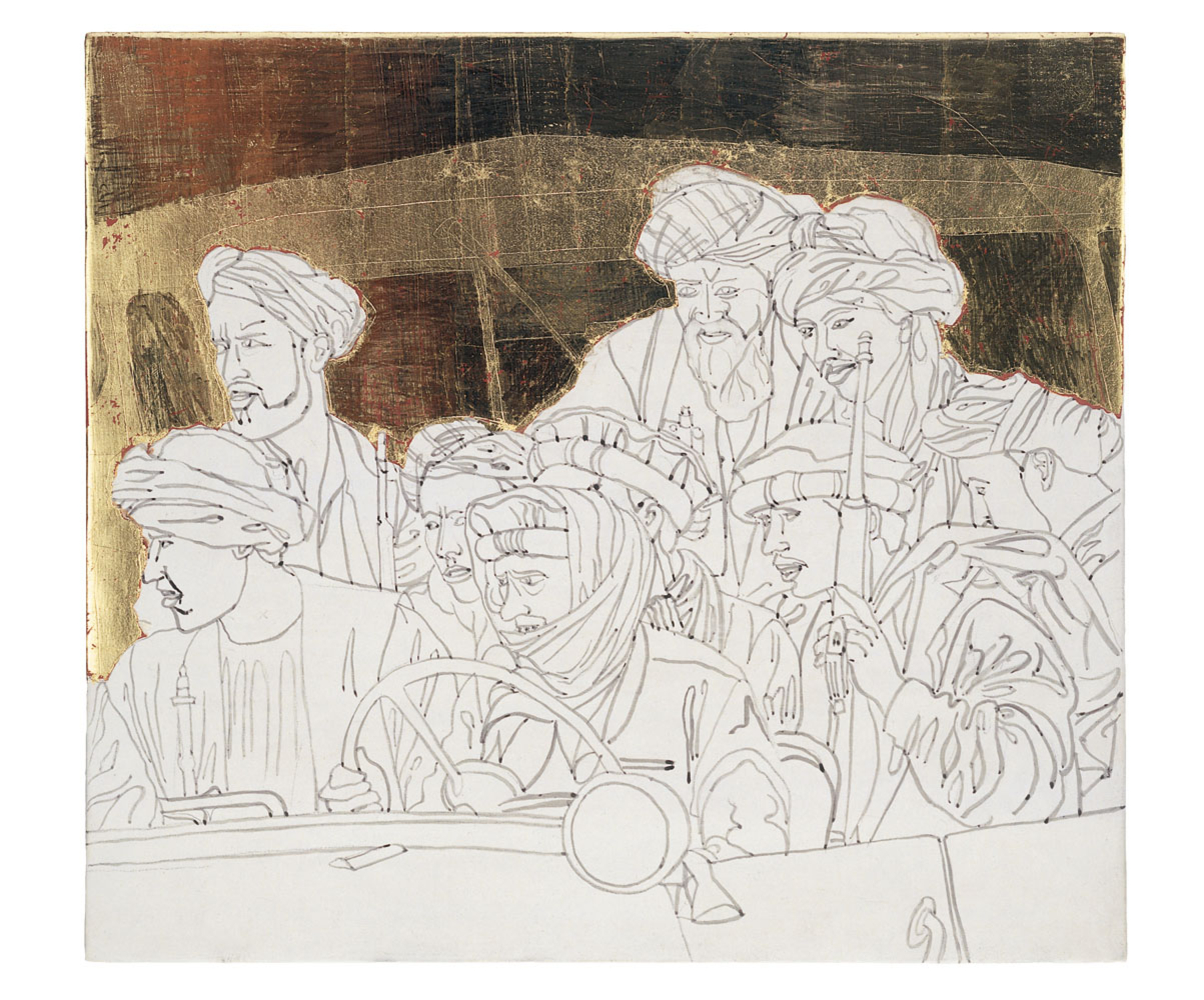 , Tusche, Gravur, Polimentvergoldung, auf Kreidegrund auf Holz, 25, 4 cm x 22,8 cm