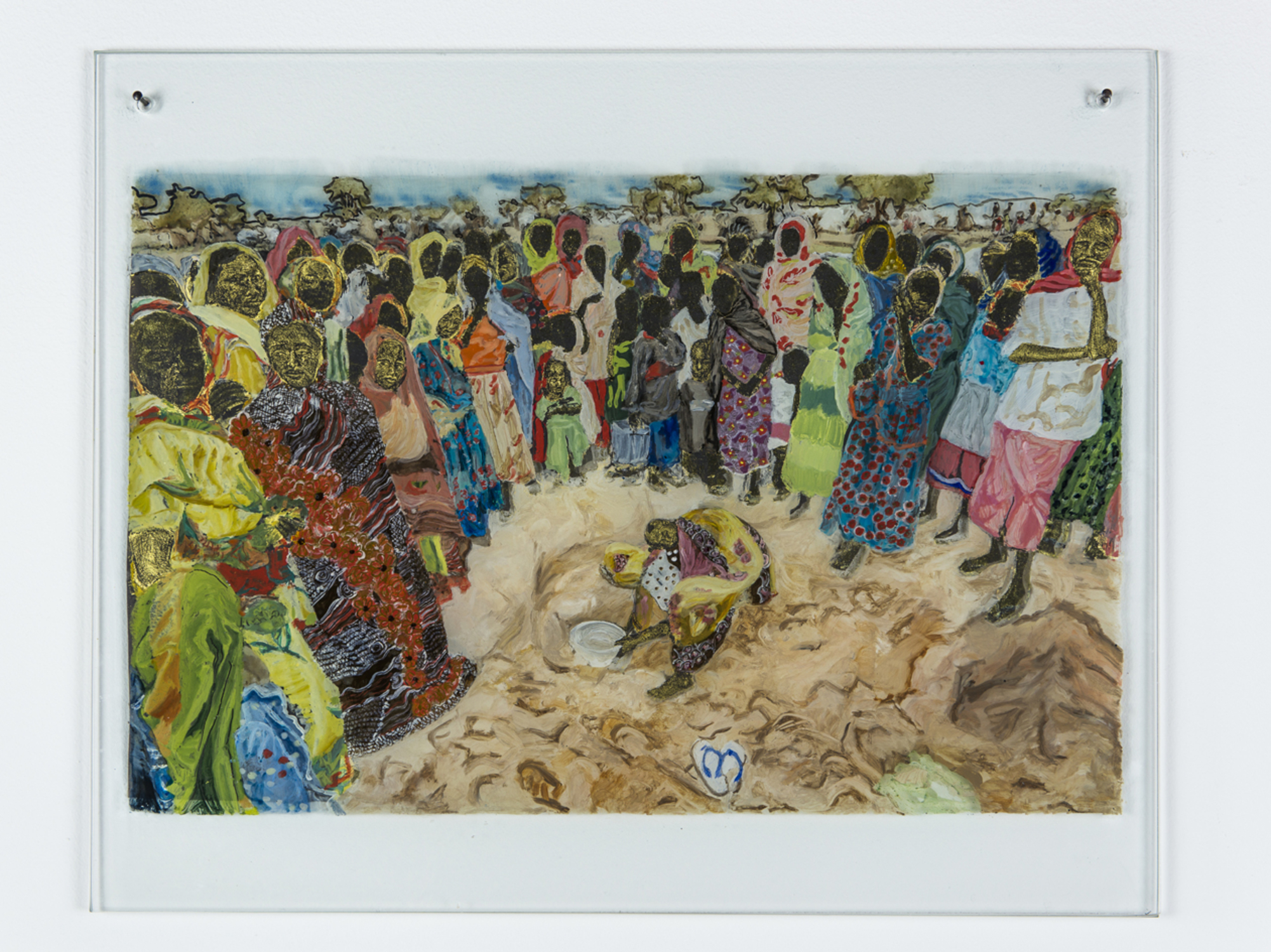 2004, Tusche, Tempera, Ölfarbe, Blattgold hinter Glas, 34 cm x 42 cm