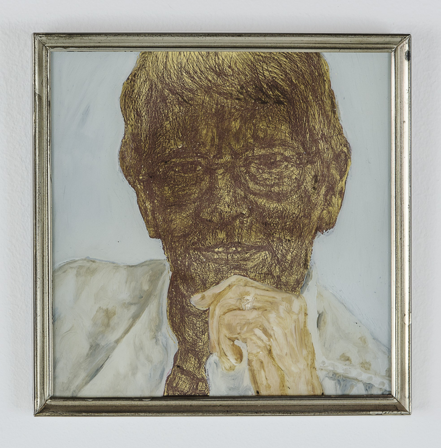 , Ölfarbe und Blattgold hinter Glas, 12 cm x 12 cm