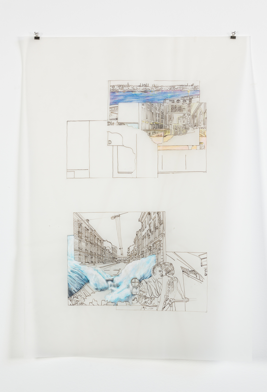 2018, Tusche, Farbstift auf Transparentpapier, 88 cm x 62 cm