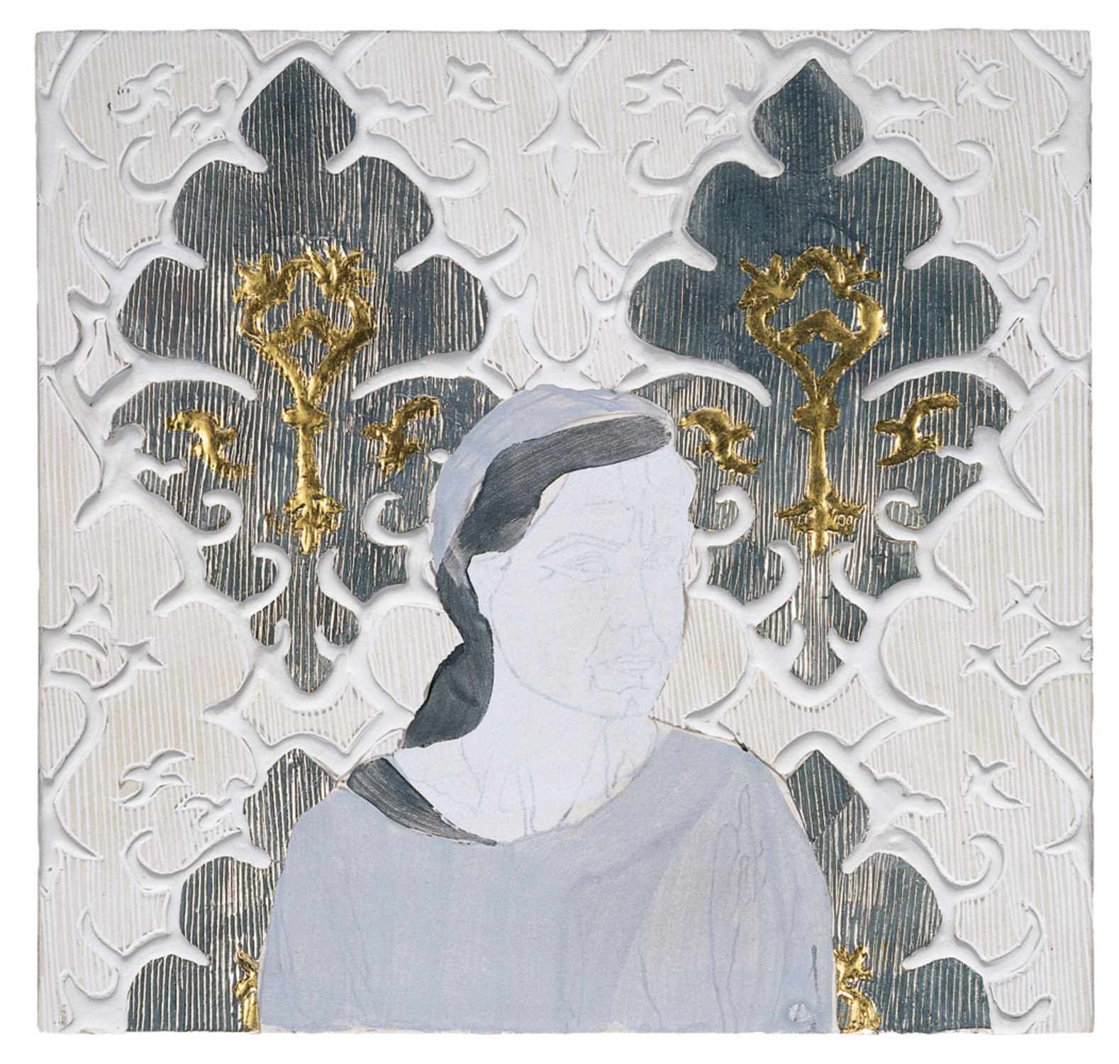 Tusche, Gravur, Tempera, Zinnfolie, Blattgold auf Kreidegrund auf Holz
