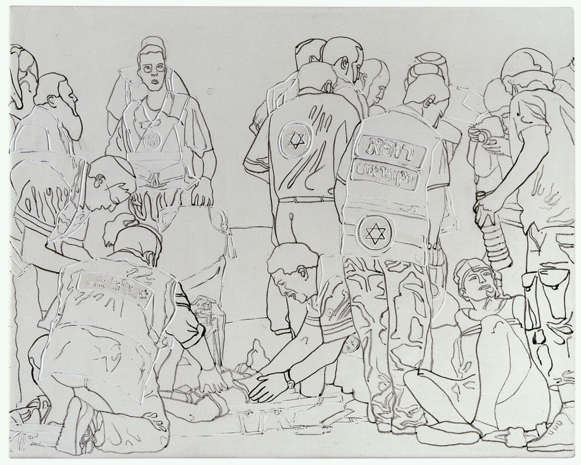 indian ink and engraving on gesso on wooden panel